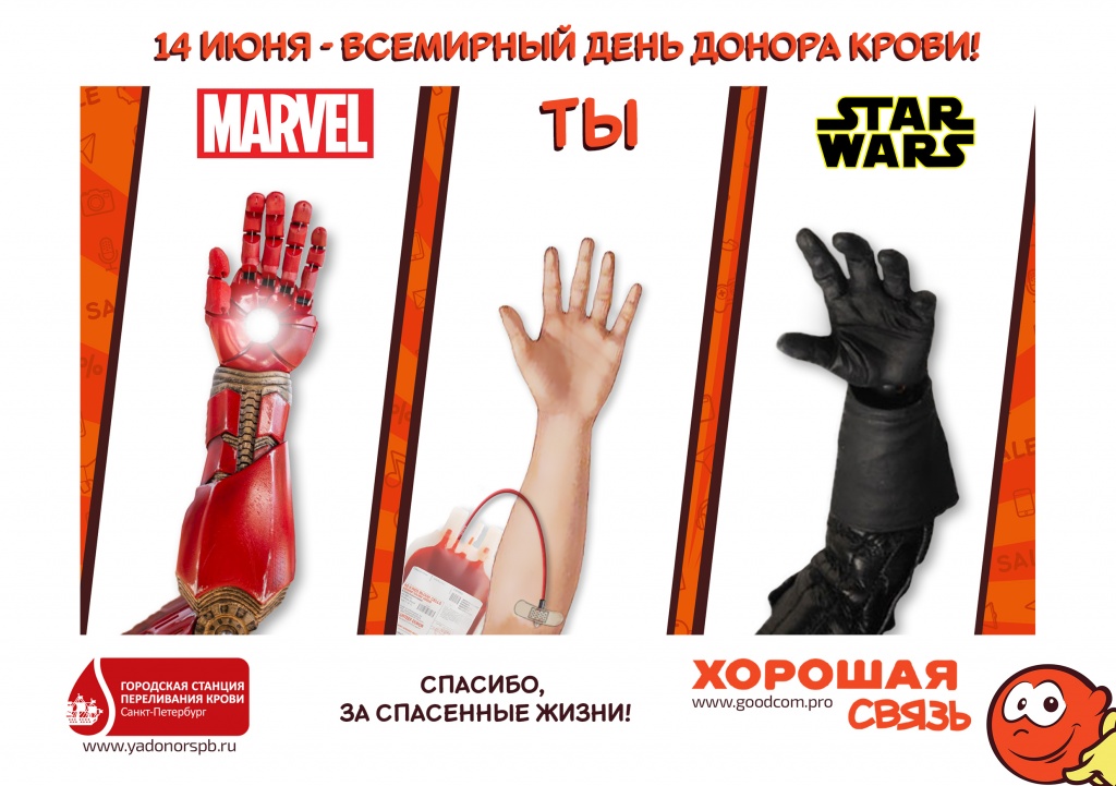 14 июня, во Всемирный день донора крови, каждый, сдавший кровь на Городской станции переливания крови получит от сети магазинов «Хорошая связь» в благодарность «Подарочную карту», дающую скидку в 500 рублей на оплату ЛЮБЫХ аксессуаров в ЛЮБОМ магазине мобильной электроники сети «Хорошая связь». Более подробные правила проведения акции.